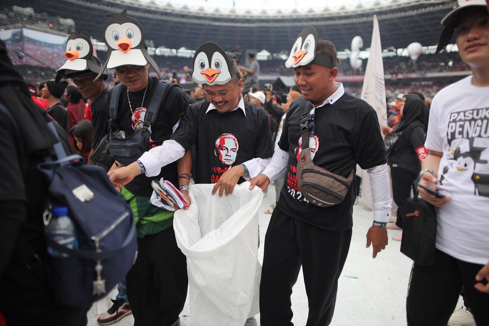 pasukan penguin sedang bersih-bersih area GBK ((GENMUSLIM.id:/dok: TPM03))