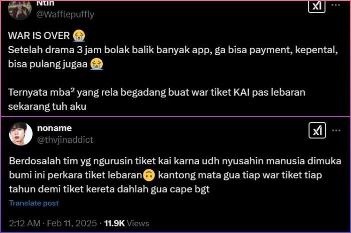 Cuitan Twitter warganet Indonesia terkait persoalan war tiket kereta api KAI (Foto: GENMUSLIM.id/dok: X @Wafflepuffly - @noname)
